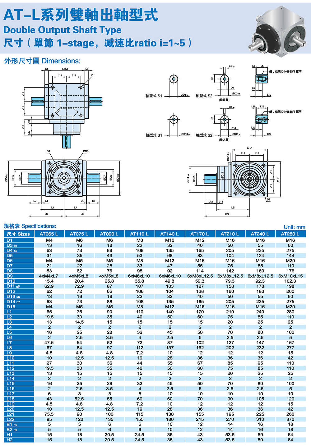 多樣化:輸出軸種類多樣化,有單出力軸型、雙出力軸型、中空軸型、中空法蘭型、中空軸錐形緊迫性、螺桿直線型、螺牙直線型。