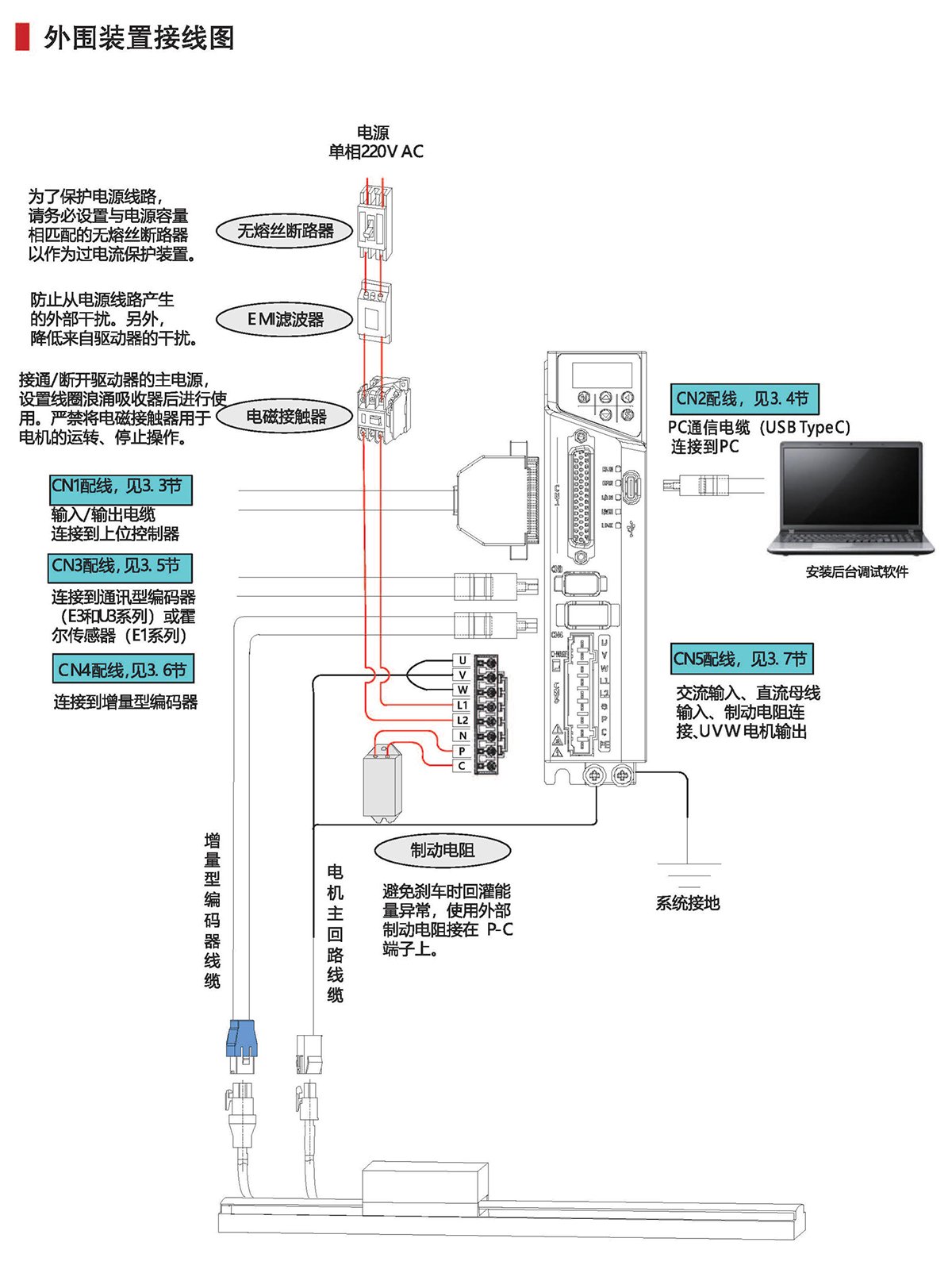 ③額定功率:S:AC220VT:AC380D:單相AC220V/3相AC220V3R0:3.0A;4R5:4.5A;6R0:6.0A;