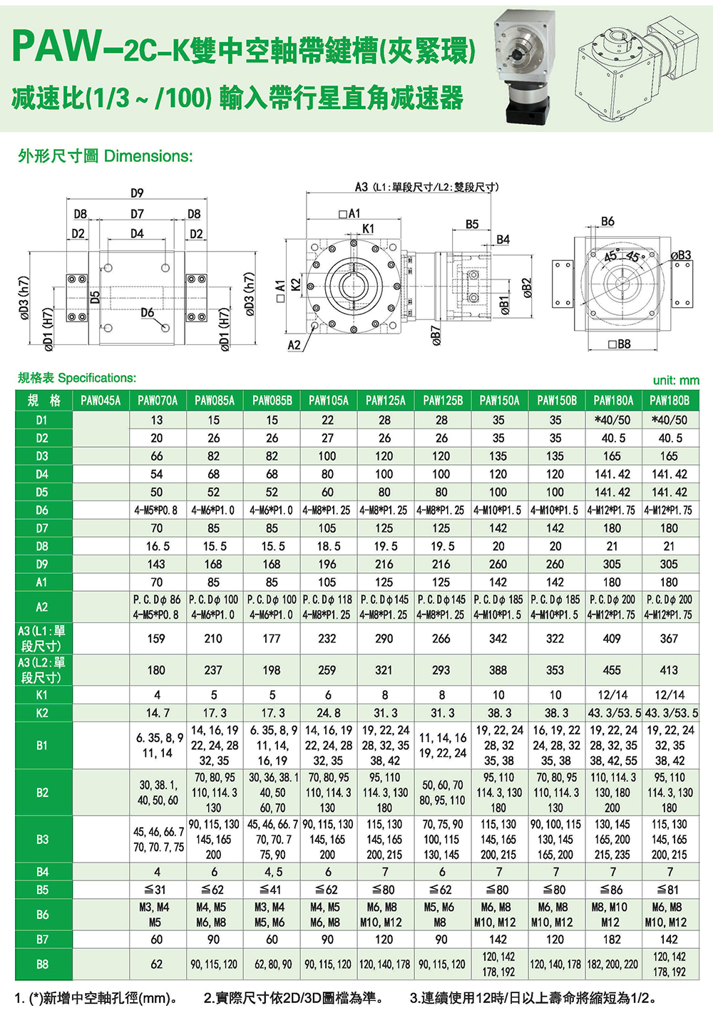 多樣化:輸出軸種類多樣化,有單出力軸型、雙出力軸型、中空軸型、中空法蘭型、中空軸錐形緊迫性、螺桿直線型、螺牙直線型。