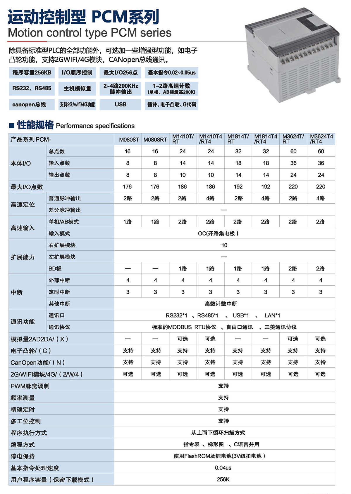 除具備標準型PLC的全部功能外,可選加一一些增強型功能,如電子 凸輪功能,支持2GWIFI/4G模塊, CANopen總線通訊。