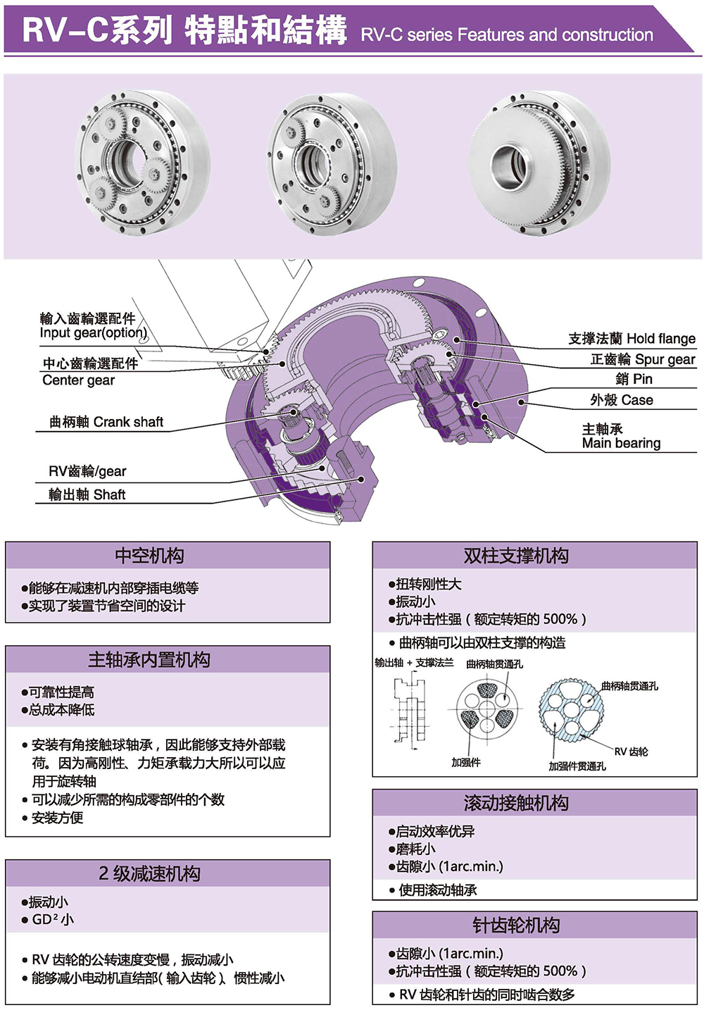 此系列專為機(jī)械手臂開發(fā),而RV-C擁有輕盈的機(jī)身,薄型的身長大大的減速機(jī)手臂傳動(dòng)的慣性使其定位更佳的精準(zhǔn)。