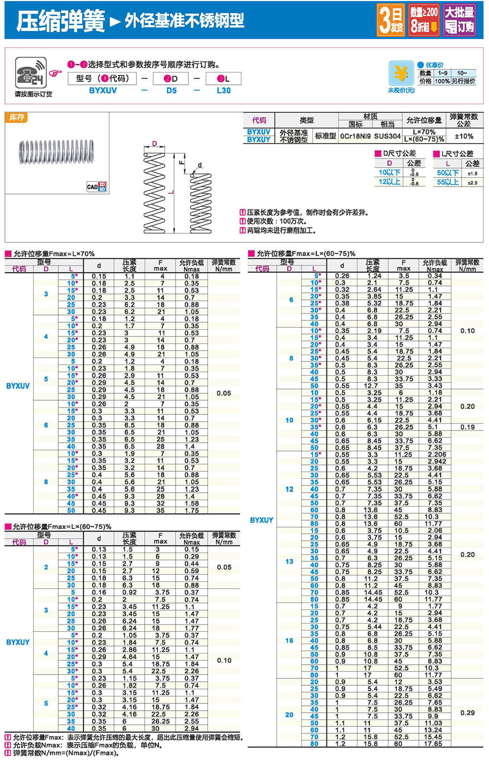 1.圓形截面壓縮彈簧:是承受軸向壓力的螺旋彈簧,它所用的材料截面為圓形。一般為等節(jié)距的,壓縮彈簧的圈與圈之間有一定間隙,當(dāng)受到外載荷時彈簧會收縮變形。其剛度穩(wěn)定,結(jié)構(gòu)簡單,制造方便,應(yīng)用較廣。
