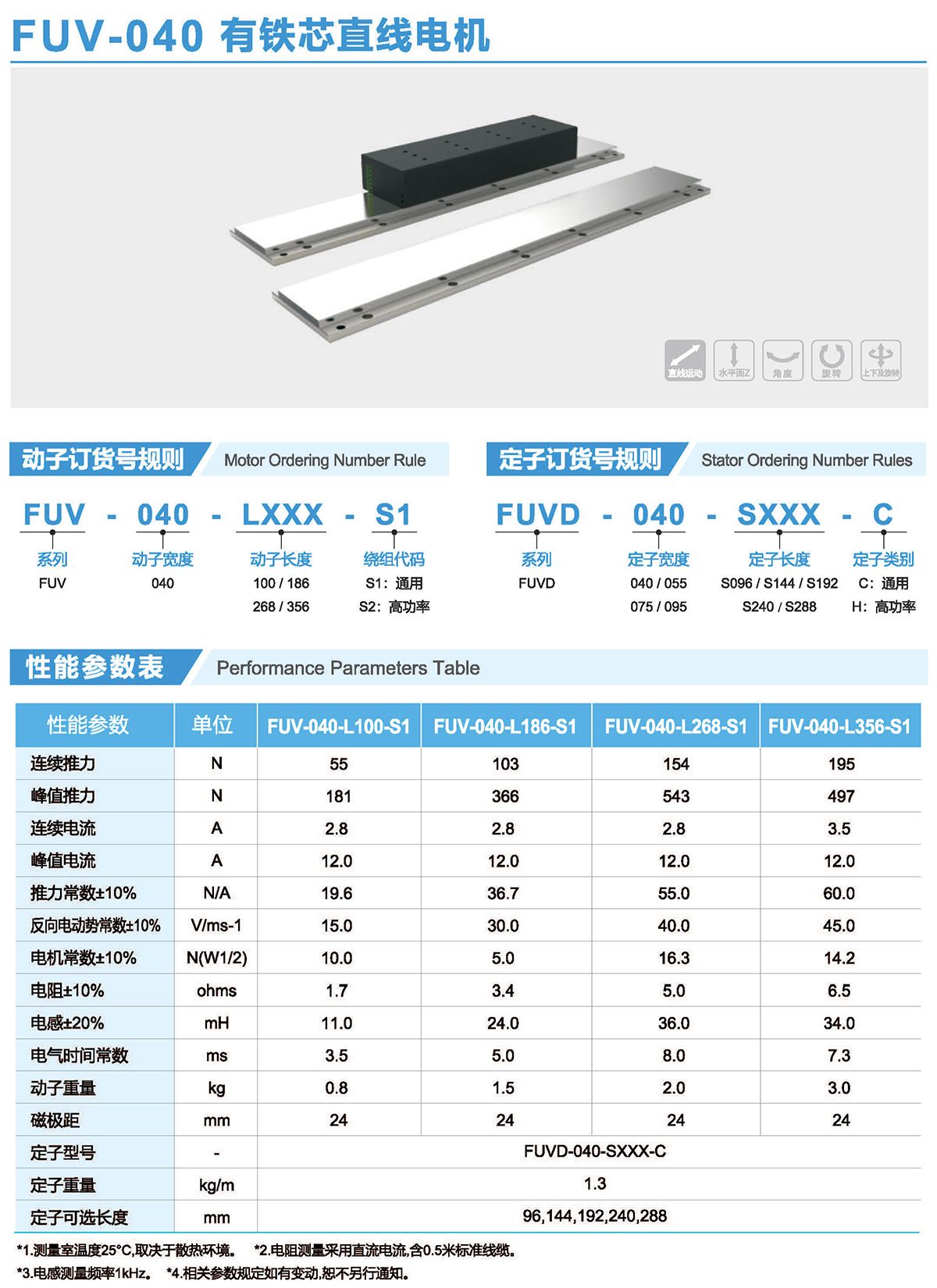 FUV系列有鐵芯電機(jī)提供了單位體積最大出力,采用了極佳的抗齒槽效應(yīng)的解決方案,最大限度的降低齒槽效應(yīng),他們外形尺寸小,吸力低,推力高,廣泛應(yīng)用于高精度高速度智能裝備領(lǐng)域。