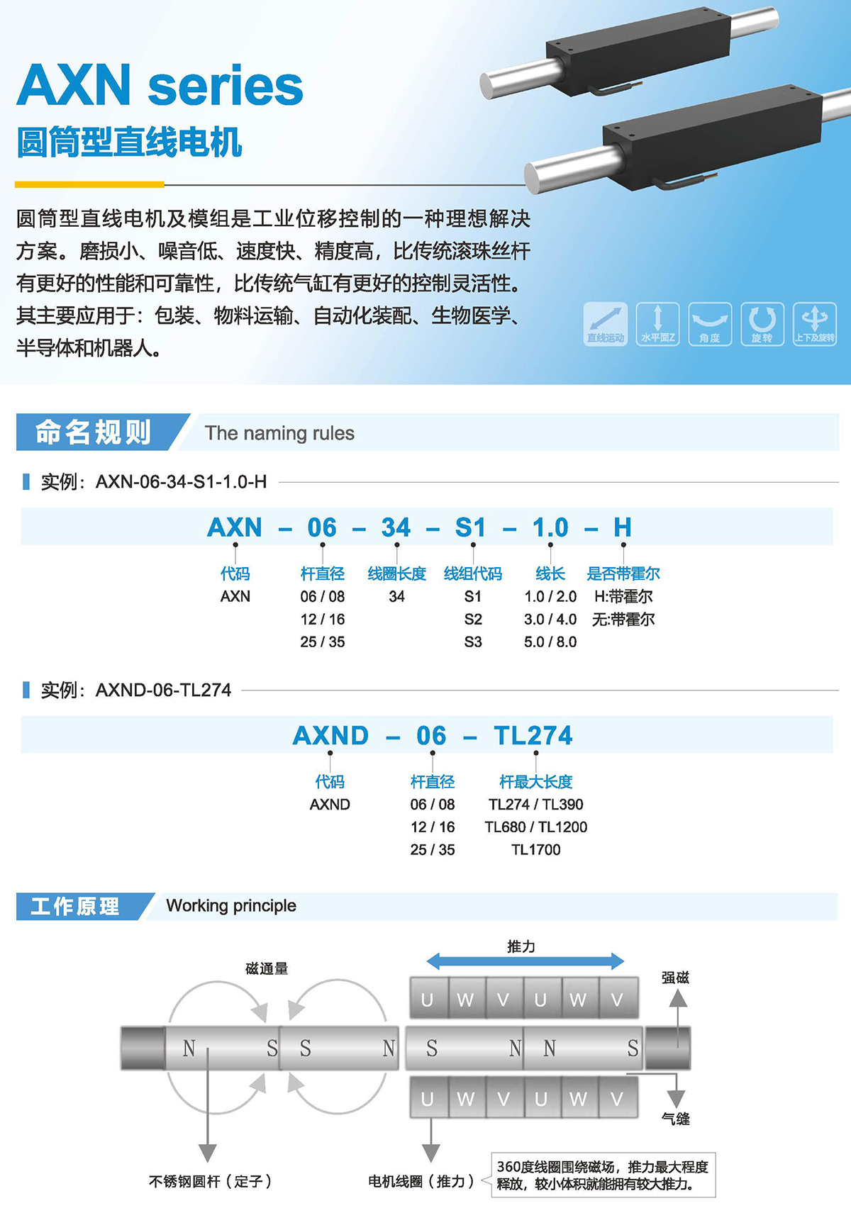 圓筒型直線電機(jī)及模組是工業(yè)位移控制的一種理想解決方案。磨損小、噪音低、速度快、精度高,比傳統(tǒng)滾珠絲桿有更好的性能和可靠性,比傳統(tǒng)氣缸有更好的控制靈活性。