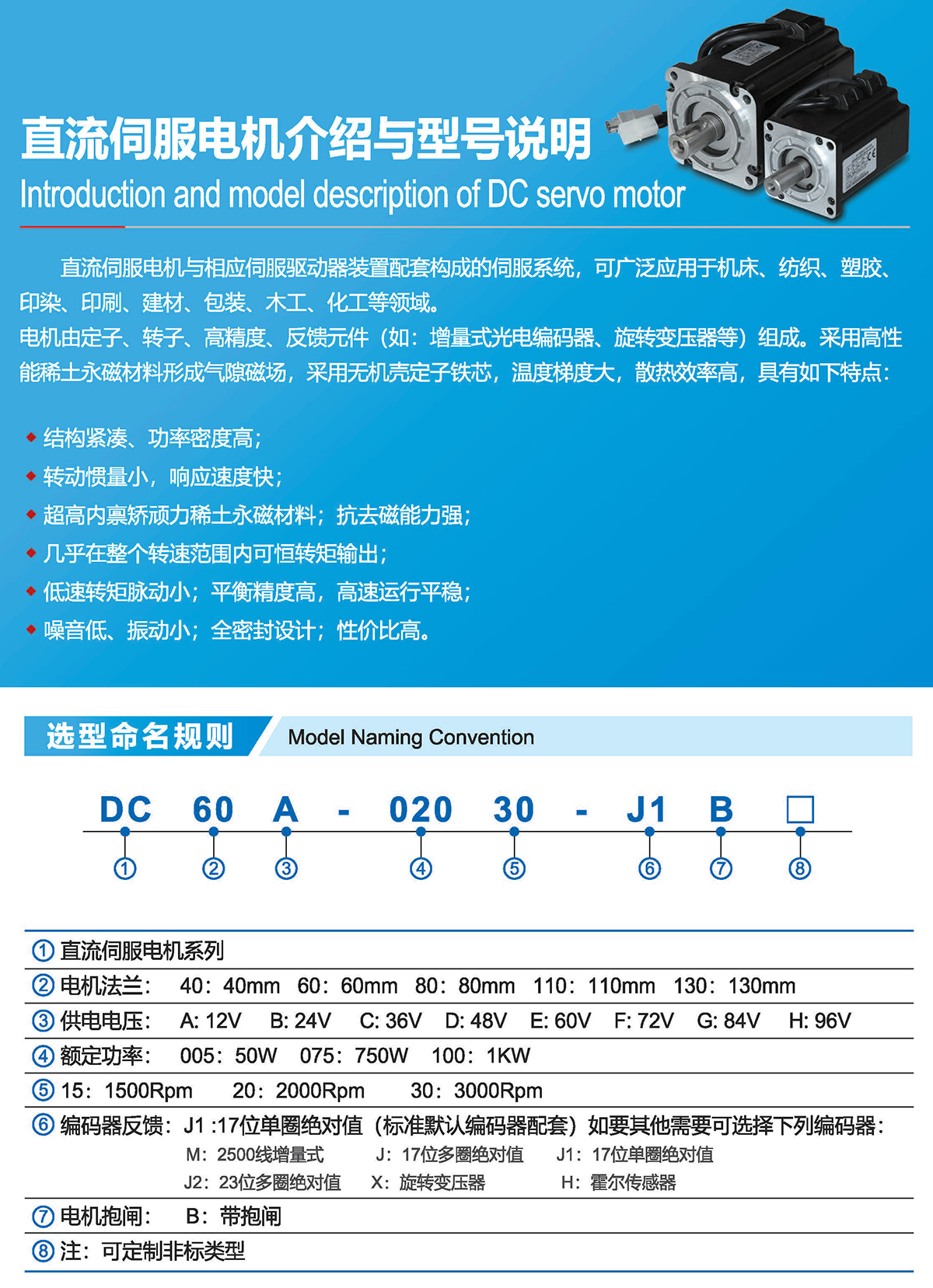 具備耐高溫、耐濕、防塵、高功率密度、大轉(zhuǎn)矩、調(diào)速性能好、節(jié)能環(huán)保、高可靠性和長(zhǎng)壽命等特點(diǎn)。